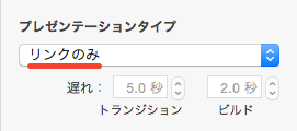 「書類」>「プレゼンテーションタイプ」を「リンクのみ」に設定
