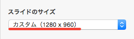 「書類」>「スライドのサイズ」>「スライドのカスタムサイズ」で、画面サイズを指定する